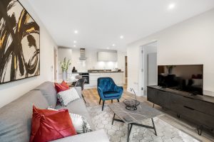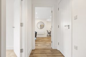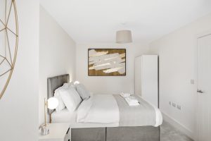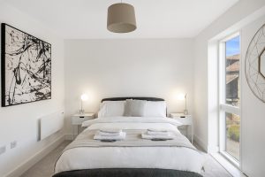 The bedrooms contain a double bed and a freestanding wardrobe. Our beautiful 300 thread-count Egyptian cotton and duck-down duvets finish off the bedrooms to ensure you get a restful night’s sleep in our apartments on water street.